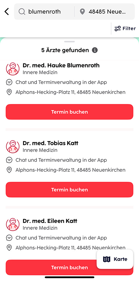 Neben einer Chat Funktion können Sie hierüber Rezepte anfragen und Dokumente wie beispielsweise einen Entlassungsbericht aus dem Krankenhaus, etc. hochladen. Zusätzlich können wir Ihnen auf Wunsch hierüber auch einen elektronischen Medikationsplan zukommen lassen. Auch ein direkter Zugriff auf unseren Online Terminkalender ist über diese App möglich. Dies kann jedoch auch ohne die App einfach über unsere Homepage (Services - Terminvergabe) erfolgen.